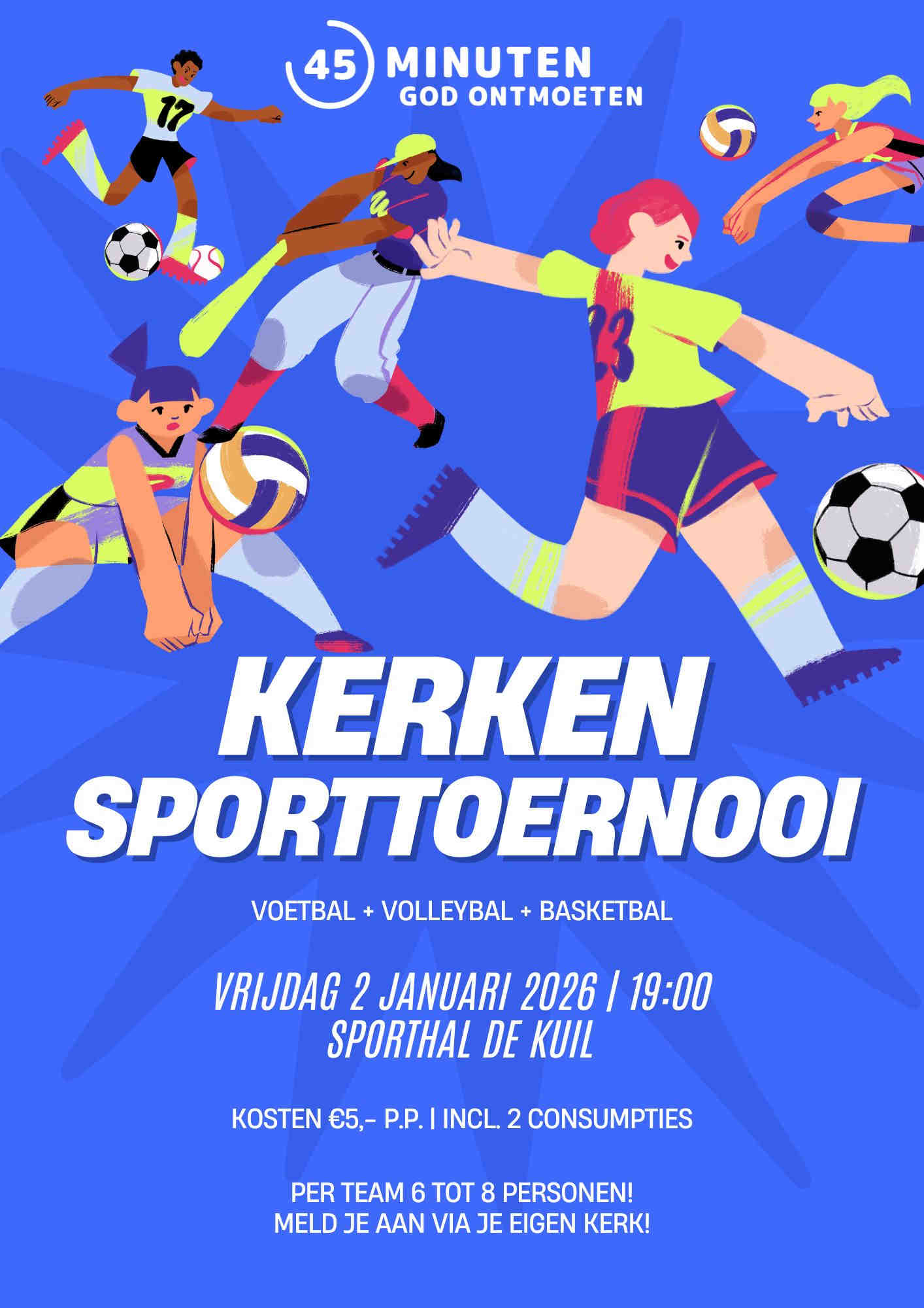 Op vrijdag 2 januari om 19:00 uur organiseren we een sporttoernooi voor jongeren uit de aangesloten kerken.